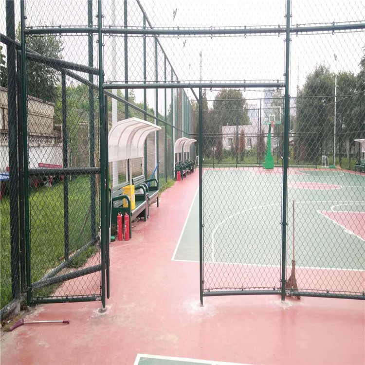 籃球場圍網(wǎng)表面處理:圍網(wǎng)采用PE/PVC包塑絲,立柱、邊框采用噴塑、浸塑處理