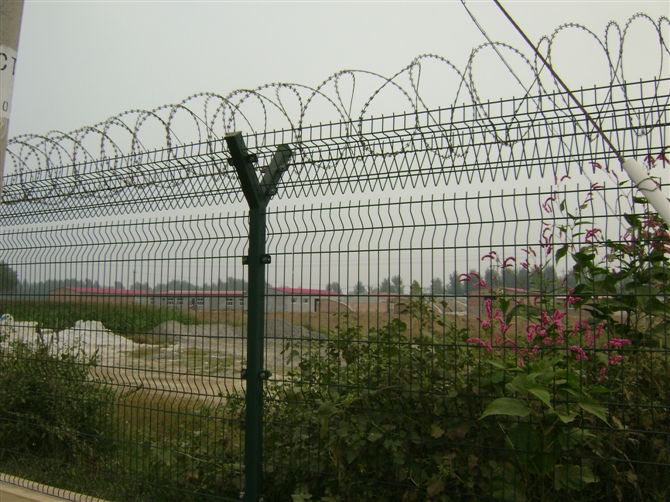 大家都特別關注機場圍界網(wǎng)的使用年限問題,因為機場圍界網(wǎng)的價格特別高,所以使用壽命也在是十幾年左右。俗話說一分錢一分貨真的沒錯,機場圍界網(wǎng)的原材料一般都是由塑后6mm的絲焊接而成的,網(wǎng)孔一般是50*100mm,而且有四道加強筋起加強的作用。高度一般也在2.4M以上,并且都含刀片刺繩。因此又被叫作“Y型安全防御護網(wǎng)”,是由V型支架立柱,加強型焊接片網(wǎng),安全防盜連接件和熱鍍鋅刀片刺網(wǎng)組成。所以以上原因造就了機場護欄不僅使用壽命極長,而且防御系數(shù)非常高。