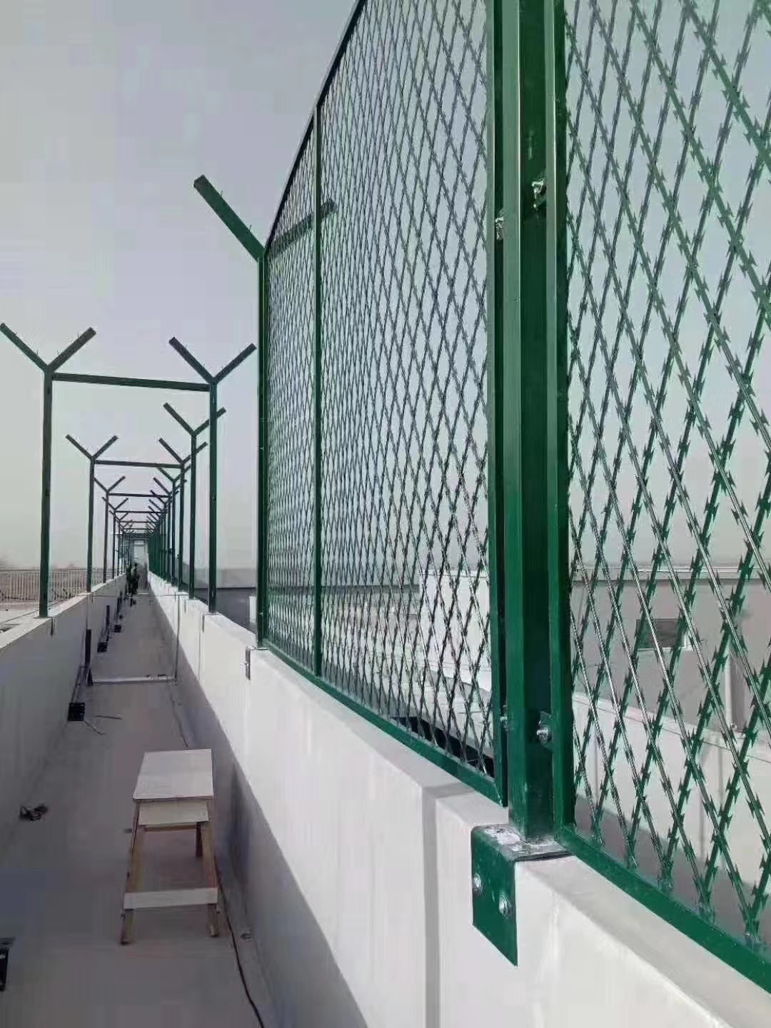 監(jiān)獄隔離網安全性高,防攀爬能力強,連接方式采用特殊的SBS緊固件連接,可有效防止人為破壞性拆除,四個水平彎肋大大提高了監(jiān)獄隔離網的強度,監(jiān)獄隔離網美觀實用,易于運輸和安裝,可根據地面的需要調節(jié)監(jiān)獄隔離網的連接位置。監(jiān)獄隔離網的高度因使用地點而異,監(jiān)獄隔離網的高度通常一般為4.2米,平坦地方的監(jiān)獄隔離網的高度為4米,末端為6米,監(jiān)獄附近的圍欄高度通常超過6米,并且隔離網頂部設有刀片,可以有效的阻斷犯人逃跑的想法。監(jiān)獄隔離網不容易因外部沖擊而變形,具有高度的靈活性,可以根據現場要求隨時進行調整,監(jiān)獄隔離網色澤鮮艷,規(guī)格齊全,網眼表面平整,張緊力強,現場施工靈活,近年來,監(jiān)獄隔離網已廣泛用于監(jiān)獄,軍事基地和其他安全場所。