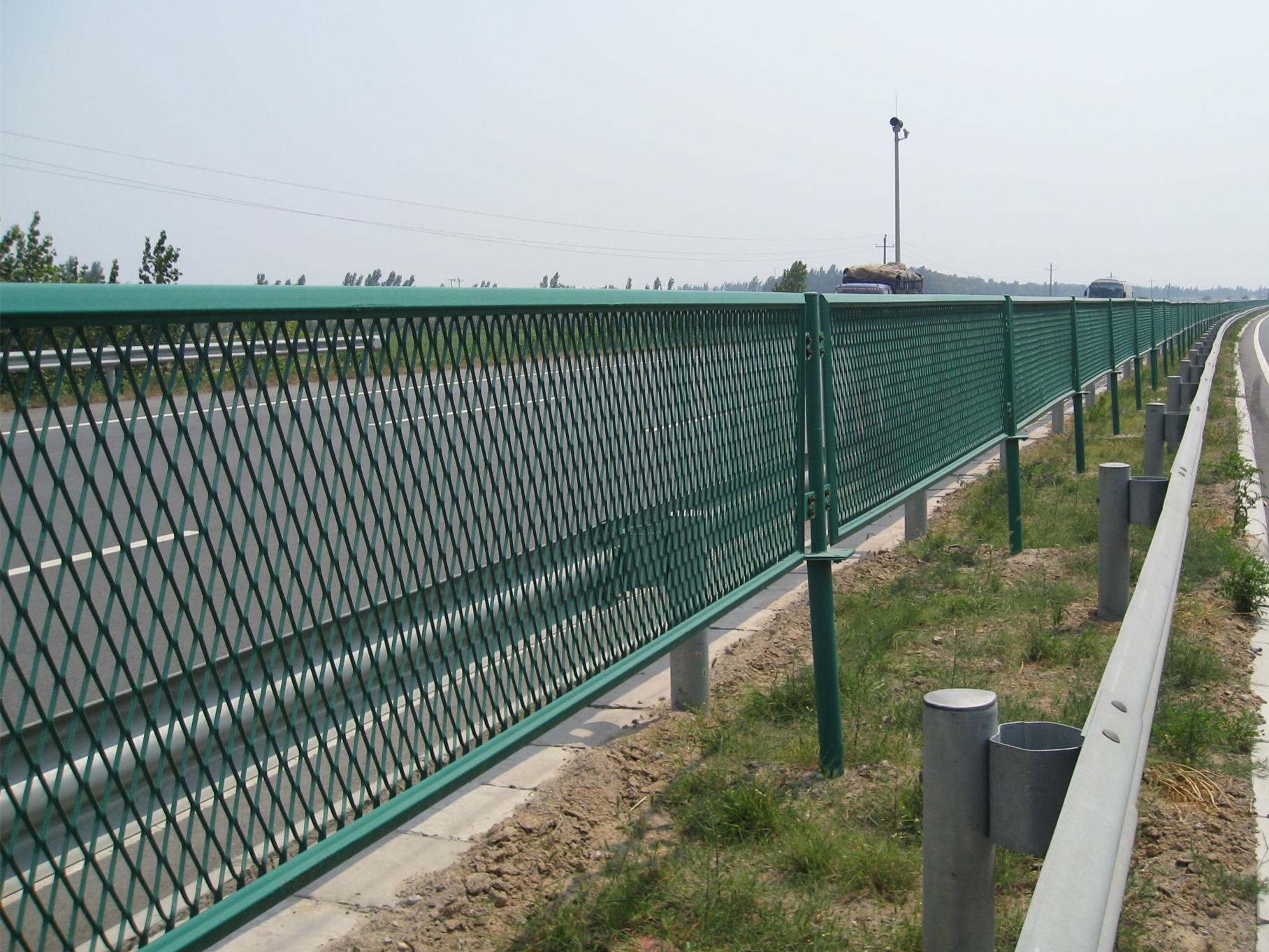 高速公路防眩網(wǎng),是交通安全設(shè)施行業(yè)中的一個(gè)品種。目前高速公路防眩設(shè)施有種植綠化樹木、防眩板、防眩網(wǎng)。種植綠化樹木雖然綠色環(huán)保但是成本比較高后期需要人工維護(hù),且一些干旱地區(qū)不宜成活。防眩板雖然造價(jià)比較低廉,但是使用壽命短,不美觀。防眩網(wǎng)是由金屬板材經(jīng)過特種機(jī)械加工處理后,形成為網(wǎng)眼狀況的張料物體??梢杂行У乇WC防眩設(shè)施的連續(xù)性和橫向通風(fēng),又可隔離上下行車道夜間會(huì)車車燈晃眼,達(dá)到防眩和隔離的目的,是一種非常有效的防眩產(chǎn)品。