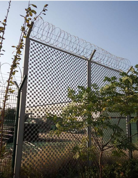 梅花刺隔離網(wǎng)最常用的表面防腐處理方式為整體熱鍍鋅,防腐性能好,不易生銹。常用于監(jiān)獄、看守所、核電站、軍事基地等高安全場(chǎng)所。