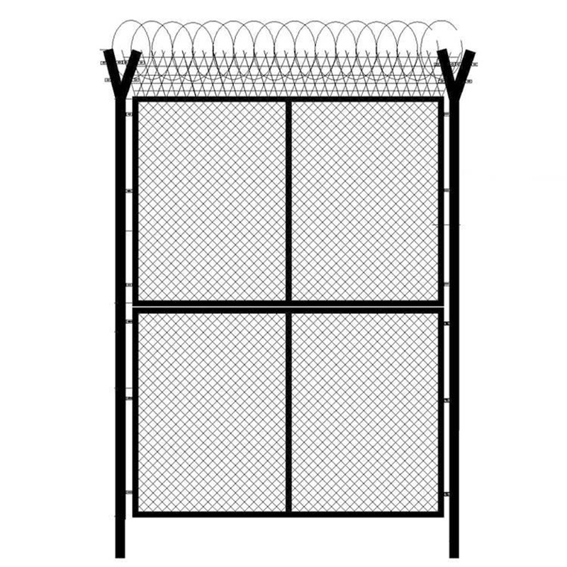 監(jiān)獄圍墻加高網(wǎng)網(wǎng)絲材質(zhì)一般選用Q235碳素鋼,網(wǎng)格大?。?0mm×150mm堅(jiān)密格型網(wǎng)加三道折彎,加固定框。網(wǎng)片固定框:20×20× 1.5mm國(guó)標(biāo)方鋼管,增加一道垂直中稱。網(wǎng)絲直徑:5mm,網(wǎng)片尺寸:2000mm-2500mm(可根據(jù)實(shí)際可用空間合理調(diào)整)。立柱規(guī)格:Y型柱直徑60mm×60mm×2.5mm方鋼。柱與網(wǎng)框連接方式:防盜螺絲貫穿式連接。網(wǎng)片頂端安裝刀片刺繩:芯絲直徑2.5mm、刀長(zhǎng)21mm,刀寬15mm,刀片刺繩直徑500mm-600mm。