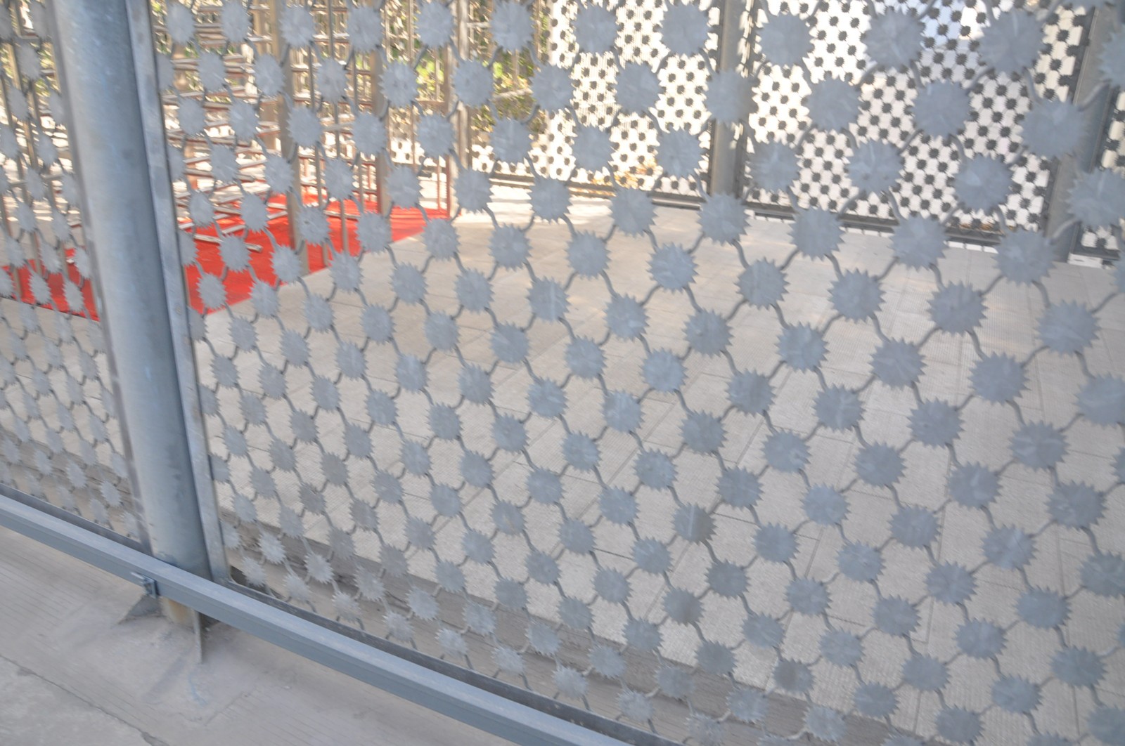 太陽花鋼網(wǎng)墻是由V型支架立柱加強型焊接片網(wǎng),安全防盜連接件和熱鍍鋅刀片刺籠組成強度和安全防御性級別很高。用途:近年來,被廣泛應(yīng)用在監(jiān)獄,看守所、軍事基地等高安全場所。