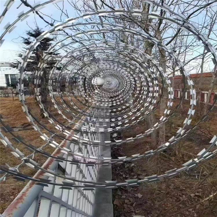 1.螺旋式刀片刺網(wǎng):又稱蛇腹網(wǎng),分為兩種:但全是刀片刺繩和螺旋式交叉刀片刺繩,但全是刀片刺網(wǎng)無需用卡子,按照其展開的自然形式進(jìn)行安裝。