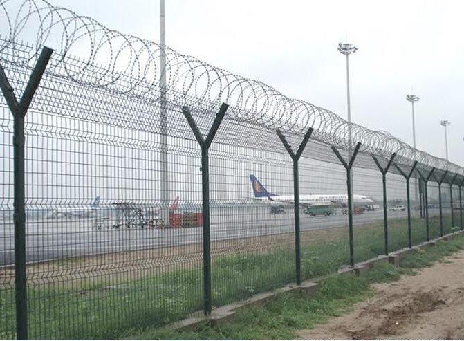 機(jī)場(chǎng)護(hù)欄網(wǎng)又稱作“Y型安全防御護(hù)網(wǎng)”,是由V型支架立柱加強(qiáng)型焊接片網(wǎng),安全防盜連接件和熱鍍鋅刀片刺網(wǎng)組成強(qiáng)度和安全防御性級(jí)別很高。被廣泛應(yīng)用在機(jī)場(chǎng),軍事基地等高安全場(chǎng)所。機(jī)場(chǎng)護(hù)欄網(wǎng)是高安全防護(hù)產(chǎn)品。所以它的質(zhì)量也是要求的比較嚴(yán)格。重要的是表面的防腐要過關(guān)。因?yàn)榉栏霾缓美锩娴匿摻z容易生銹,對(duì)使用壽命會(huì)大大的影響。