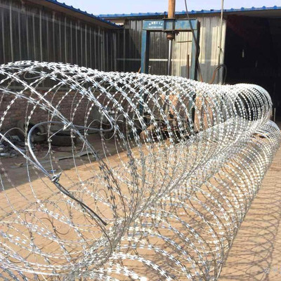 刀片刺繩防護(hù)網(wǎng)就是選用金屬質(zhì)料制作而成的像刀片相同形狀的刺繩。那么它是怎樣出產(chǎn)出來(lái)的,怎樣成型的呢?
