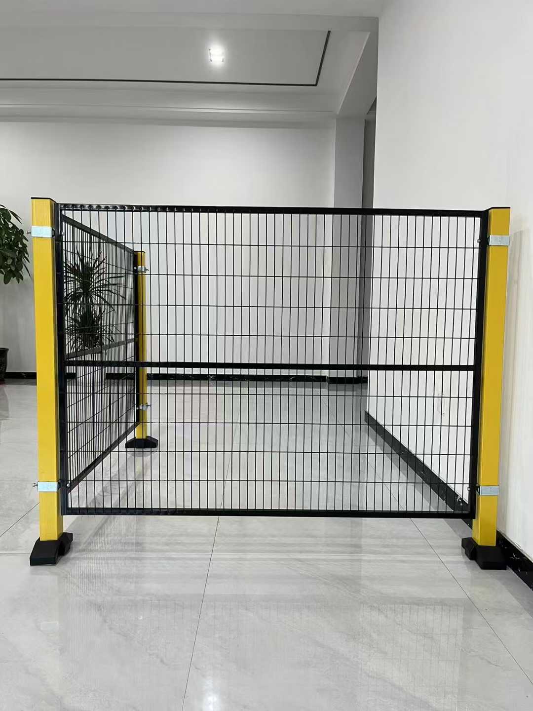 寬度:1000mm、1200mm、1500mm;立柱:60x60mm;機(jī)器人圍欄優(yōu)點(diǎn):標(biāo)準(zhǔn)配件快速連接,防護(hù)能力強(qiáng)扭不脫焊,網(wǎng)身輕巧,造型新穎,美觀實(shí)用。工業(yè)機(jī)器人圍欄的安裝方式可拆卸??刹鹦兜陌惭b方式就是一根立柱共用,兩邊兩片圍欄連接件連接起來(lái),這種就是在機(jī)器需要維修或者大型設(shè)備需要進(jìn)出場(chǎng)地的時(shí)候方便拆裝,當(dāng)然因?yàn)橛玫牟牧隙?,成本就?機(jī)器人防護(hù)網(wǎng)使用范圍: