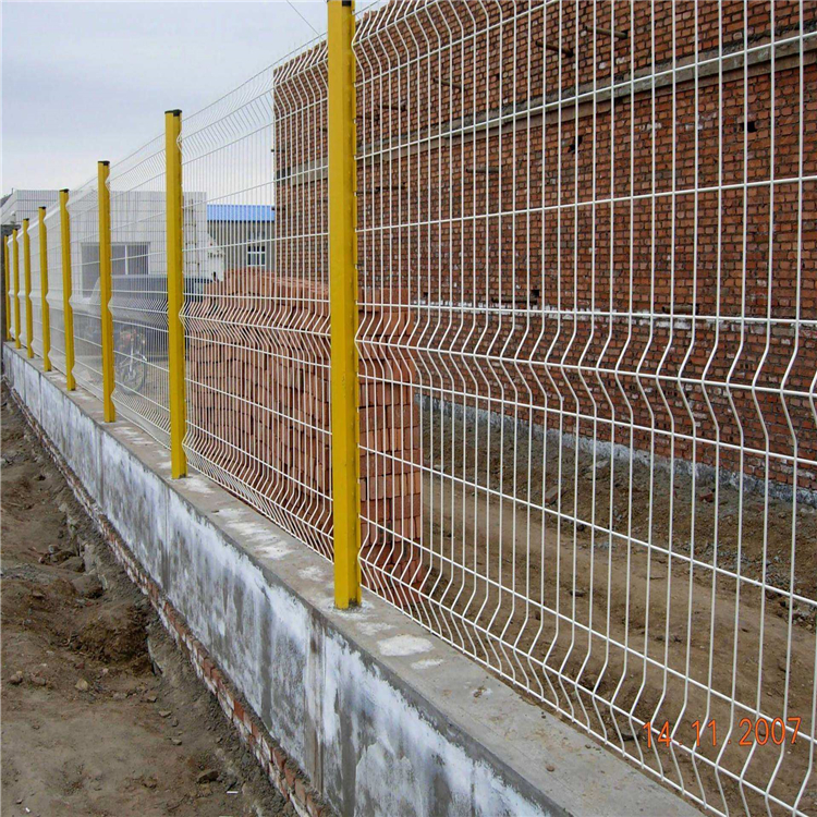 其次,桃型柱護(hù)欄網(wǎng)的安裝方式很不普通,網(wǎng)片和立柱不是簡(jiǎn)單的通過連接掛件連接,而是在網(wǎng)片做好的時(shí)候,通過機(jī)器把折彎處的網(wǎng)絲減去,形成一個(gè)內(nèi)凹的形狀,然后在安裝的同時(shí),把內(nèi)凹的部分關(guān)在桃型柱立柱的卡槽內(nèi),確保網(wǎng)片和立柱的穩(wěn)固。