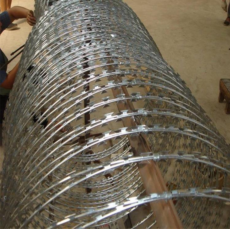 咱們的不銹鋼刺網可以分為430不銹鋼、201不銹鋼、304不銹鋼、316不銹鋼刺網,刺網有蛇腹型刀刺網(又稱螺旋型刀刺網)、平板型刀刺網(即螺旋型刀刺網展開后平板狀)、直線型刀刺網(又稱管笆式刀刺網)三大類,今天給大家介紹蛇腹型刀刺網,常用的規(guī)格型號是BTO-22,板厚0.5mm,線徑2.5mm,刀片長度22mm,刀片寬度15mm,兩片間距34mm,刀刺網直徑一般為500mm、600mm、800mm。