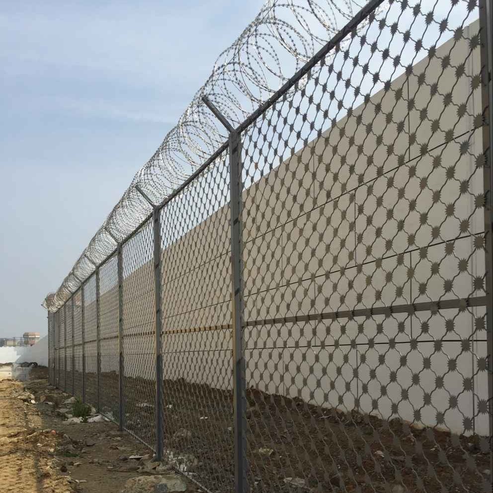 太陽花刺片鋼網(wǎng)墻也叫梅花刺片隔離網(wǎng)墻,整體架構(gòu)由美格網(wǎng)+梅花刺片、邊框、立柱、刀刺網(wǎng)組成,常用于監(jiān)獄、看守所、核電站、軍事基地等高安全場所。