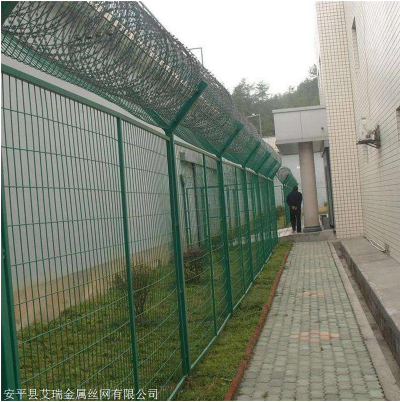 監(jiān)獄也需求隔離網(wǎng)進(jìn)行防護(hù),但監(jiān)獄所需求的護(hù)欄網(wǎng)是防護(hù)性較高的護(hù)欄網(wǎng)。監(jiān)獄鋼網(wǎng)墻又稱作監(jiān)獄隔離網(wǎng),主若是選用高強(qiáng)度的刀片刺網(wǎng)與尋常防護(hù)網(wǎng)的融合,由V型支架立拄,加強(qiáng)型焊接片網(wǎng),平安防盜連接件和刀片刺網(wǎng)構(gòu)成。刀片刺網(wǎng)是一種新型防護(hù)網(wǎng),由銳利尖角鍍鋅鋼板或不銹鋼薄板做刀片,鋼絲做芯線組合而成的防護(hù)器械。