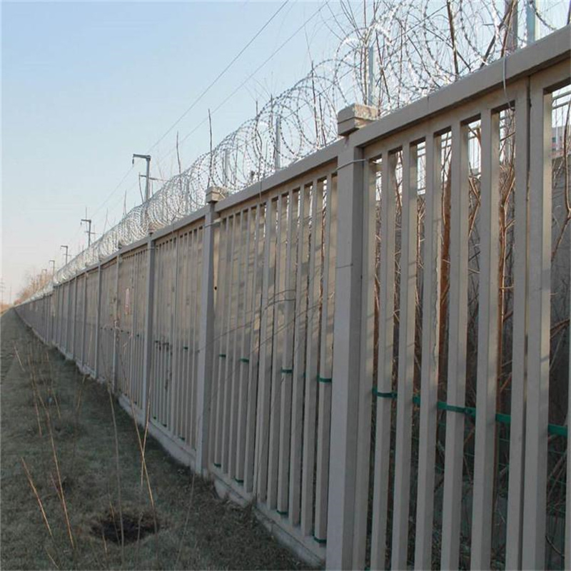 高鐵防護(hù)柵欄刺絲滾籠裝置前提示:鐵路上的水泥防護(hù)柵欄安裝完畢后,即可安裝刺絲滾籠,一般在水泥防護(hù)柵欄的基礎(chǔ)上加高0.5米的刺絲滾籠以增加防護(hù)能力。安裝刺絲滾籠前要先安裝階梯支架和加密支架后開始縱向拉筋和刺絲滾籠的安裝,安裝時需求帶防割手套以避免手被割傷。