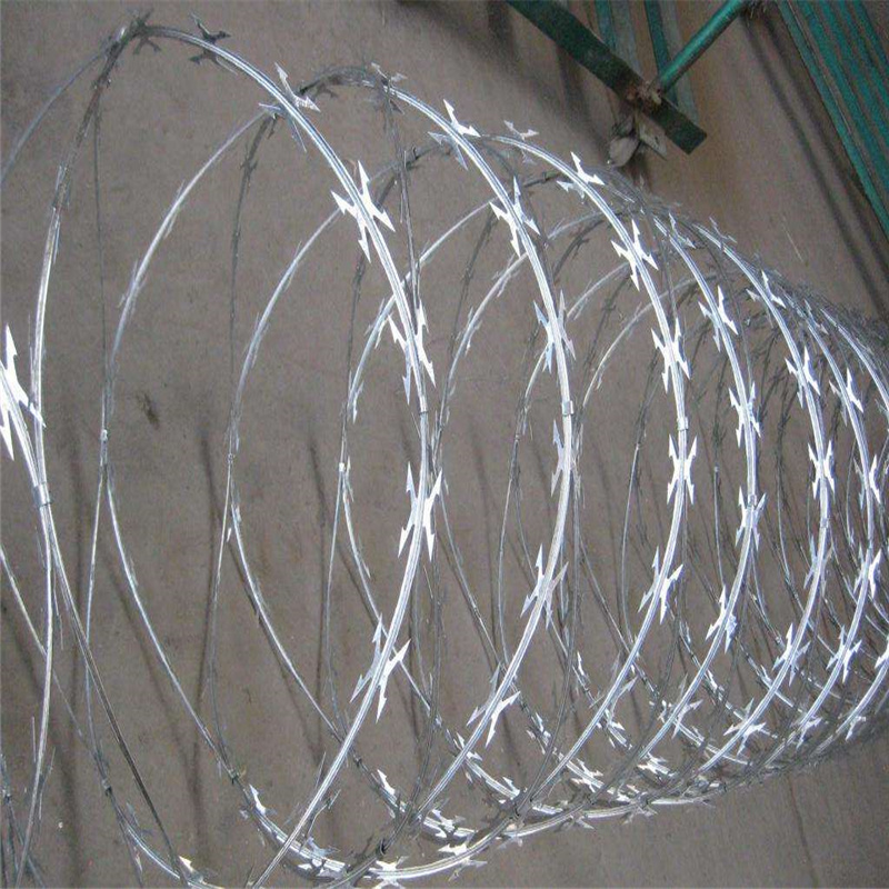 刺絲滾籠用于牧場邊界、鐵路、高速公路的阻隔防護(hù)以及園林公寓,機(jī)關(guān)單位,哨卡,邊防等的圈禁防護(hù)。使用的刺絲滾籠防護(hù)作用怎么樣?下面來了解一下吧!刺絲滾籠選用刀片刺繩繞圈后相臨兩圈每隔120°用刺絲銜接卡固定,打開后形成蛇腹網(wǎng)狀,閉合后刀片刺繩圈徑為50cm,打開后每穿插圈安裝距離20cm,直徑不小于45cm.