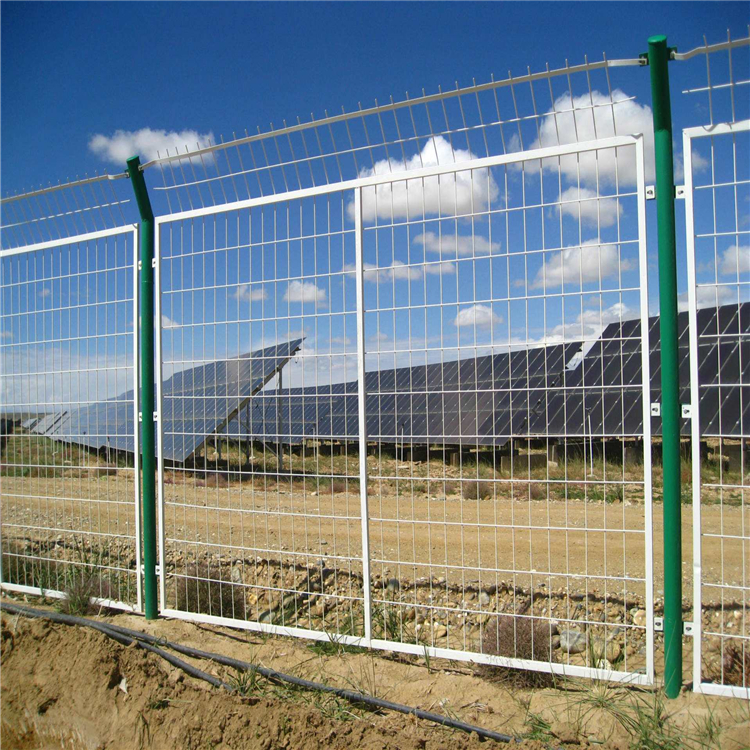 光伏發(fā)電、太陽(yáng)能發(fā)電是近幾年逐漸興起并快速發(fā)展的清潔能源發(fā)電站、發(fā)電場(chǎng),為了更好的接受陽(yáng)光的照射,這些場(chǎng)地一般設(shè)在比較開(kāi)闊的山坡、斜坡等空地上。這樣一來(lái),就需要有隔離網(wǎng)、防爬網(wǎng)、鐵絲網(wǎng)、護(hù)欄網(wǎng)、圍欄等對(duì)發(fā)電站、發(fā)電場(chǎng)地進(jìn)行防護(hù)隔離,進(jìn)一步保障光伏發(fā)電設(shè)備的正常運(yùn)轉(zhuǎn)。光伏電場(chǎng)電站防護(hù)圍欄采用采用優(yōu)質(zhì)低碳鋼絲作為原材料,表面浸塑具有日久抗腐蝕、抗紫外線不怕雨淋的特點(diǎn)。這種工藝有無(wú)需模具、加工成本低、成型容易、可加工各種外形等特點(diǎn)被廣范使用。是專(zhuān)門(mén)為光伏電站設(shè)計(jì)的防護(hù)設(shè)備,主要是用在光伏電站各個(gè)區(qū)域的防護(hù)和隔離。它有效防止了變電站內(nèi)外的人身安全和變電器等設(shè)備的防盜,是光伏電站重要的防護(hù)產(chǎn)品。