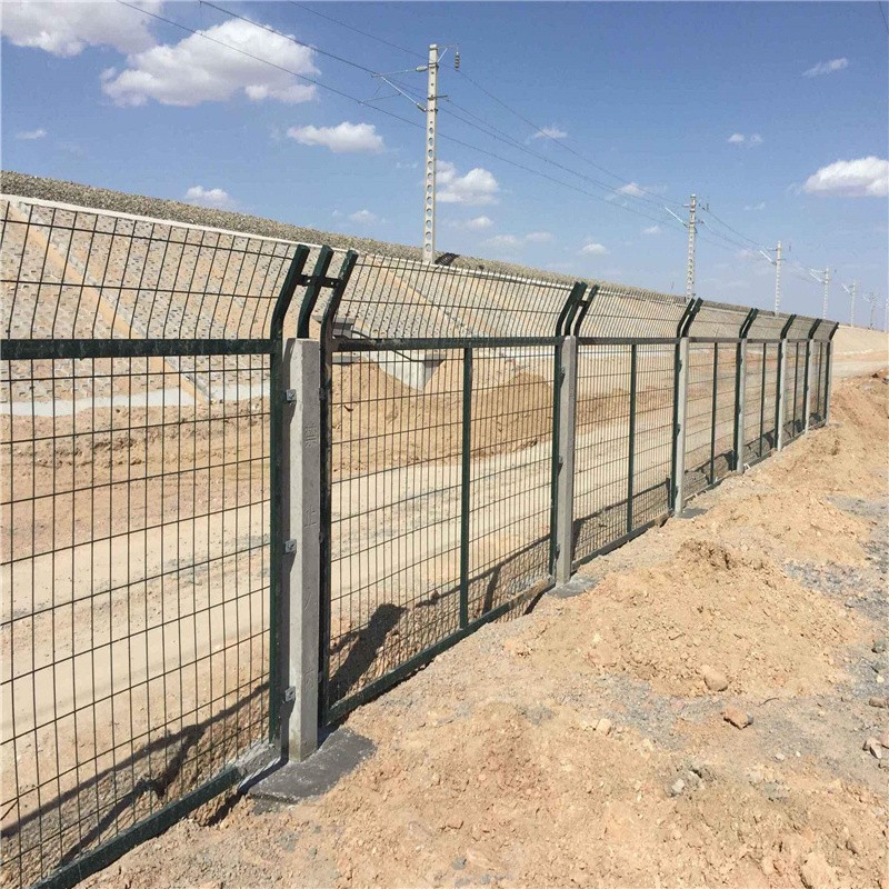 鐵路防護欄 鐵路防護圍欄 高速鐵路護欄網的規(guī)格:網高x網寬(中心距) :1.797米x2.76米; 1.7米×2.76米;常規(guī)立柱要求: 水泥立柱或者鋼立柱