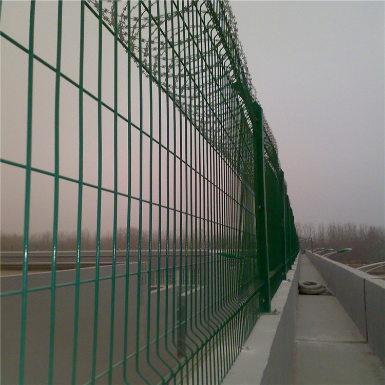 監(jiān)獄金屬隔離網(wǎng)墻又叫監(jiān)獄金屬隔離網(wǎng)、監(jiān)獄金屬鋼網(wǎng)墻、監(jiān)獄金屬防護(hù)網(wǎng)。監(jiān)獄金屬隔離網(wǎng)設(shè)計(jì)要求:監(jiān)獄金屬隔離網(wǎng)墻以3000mm長為一個制作、安裝金屬隔離網(wǎng)墻間距規(guī)格為3000mm(長)x4000mm(高)。每3000mm預(yù)埋螺栓(4個M16x300mm),其上安裝立柱一根立柱底端焊接法蘭盤,法蘭盤與混凝土基礎(chǔ)內(nèi)的預(yù)埋螺栓(4個M16x300mm)固定連接。網(wǎng)墻單元設(shè)計(jì)為具有邊框的隔離網(wǎng)片,邊框與立柱之間