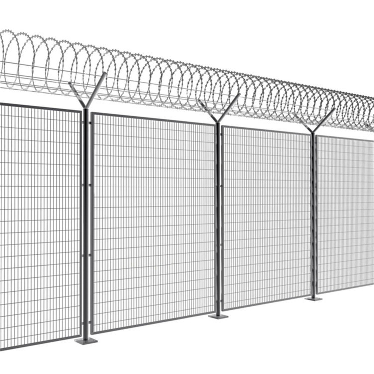 監(jiān)獄鋼網(wǎng)墻安全網(wǎng)又稱作“Y型安全防御護(hù)網(wǎng)”,是由V型支架立柱加強(qiáng)型焊接片網(wǎng),安全防盜連接件和熱鍍鋅刀片刺籠組成,強(qiáng)度和安全防御性級(jí)別很高。近年來(lái)被廣泛應(yīng)用在監(jiān)獄,軍事基地等高安全場(chǎng)所。注如果在監(jiān)獄護(hù)欄網(wǎng)頂部加裝刀片刺絲、刀片刺繩后又很好的增強(qiáng)了安全防護(hù)性能。采用電鍍、熱鍍、噴塑、浸塑等防腐形式,具有很好的kang老化、kang曬、nai候等特點(diǎn)。