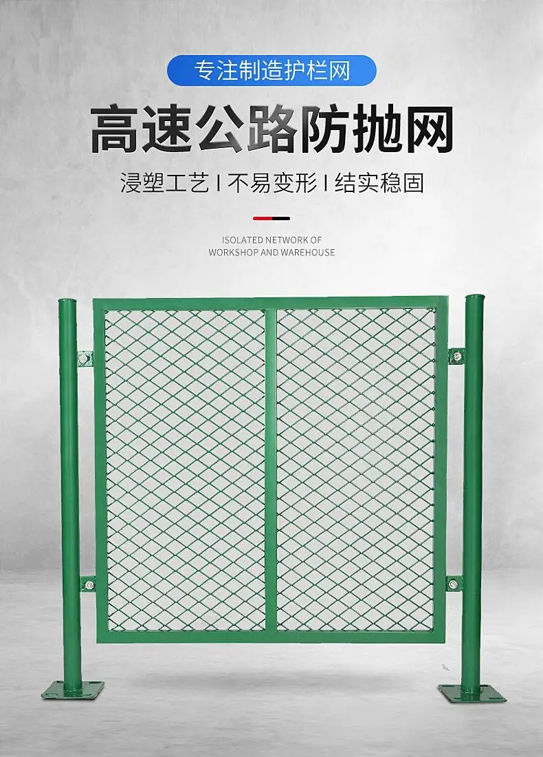 防拋網(wǎng)主要有兩種類型:鋼板網(wǎng)防拋網(wǎng)和焊接網(wǎng)防拋網(wǎng)。鋼板網(wǎng)防拋網(wǎng)的網(wǎng)面通過(guò)鋼板沖孔而成,邊框使用角鋼,立柱則采用方管或H型鋼。而焊接網(wǎng)防拋網(wǎng)則與我們之前介紹過(guò)的焊接網(wǎng)隔離柵材料相同。