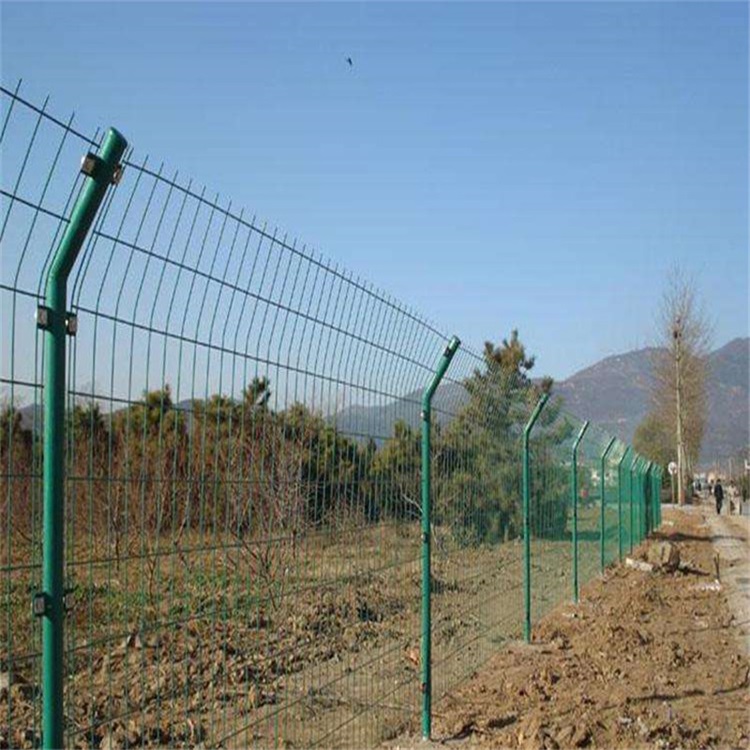 框架護(hù)欄網(wǎng)?:帶邊框的護(hù)欄網(wǎng),增加了其堅(jiān)固度與承受能力,常見(jiàn)于高速公路邊上,多為綠色,頂部有30公分的30°折彎,起到防攀爬作用。