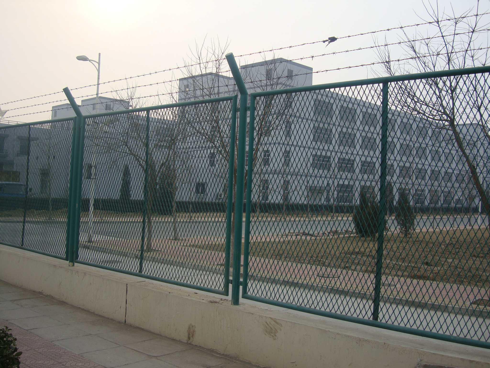 金屬護欄網(wǎng)圍墻一般采用低碳鋼絲作為主要材料,具有耐腐蝕、耐磨損、抗拉強度高等特點,采用框架結(jié)構(gòu),邊框可使用方管、圓管或角鋼,立柱采用Y型立柱,頂部安裝防爬刀刺網(wǎng),高度也可根據(jù)現(xiàn)場要求定制,以確保足夠的防護效果。包括頂部應(yīng)設(shè)置的刀刺網(wǎng),以有效防止人員攀爬。這種架構(gòu)形式能提供更好的視野和通風效果。邊框網(wǎng)結(jié)構(gòu)相對于磚墻來說具有更大的網(wǎng)眼和更少的遮擋物,能夠提供更好的視野和通風效果,使得環(huán)境更加明亮和通風。