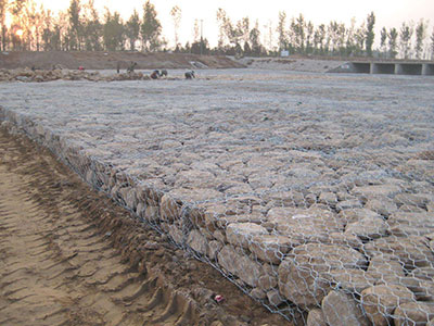 雷諾護墊也叫石籠護墊,格賓護墊,是指由機編雙絞合六邊形金屬網(wǎng)面構(gòu)成的厚度遠小于長度和寬度的墊形工程構(gòu)件。雷諾護墊中裝入塊石等填充料后連接成一體,成為主要用于水利堤防、岸坡、海曼等的防沖刷結(jié)構(gòu),具有柔性、對地基適應(yīng)性的優(yōu)點。