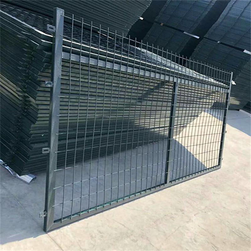 鐵路兩側(cè)防護(hù)柵欄為冷拔鋼絲點(diǎn)焊熱浸塑網(wǎng)片,外型尺寸為2760*1790mm,網(wǎng)格尺寸為75*150mm,鋼絲為φ4mm , 網(wǎng)片邊框采用20*30*1.5mm的方管焊接而成,網(wǎng)片連接片由40*40*4mm鋼片制作,防盜螺栓的螺柱、螺帽、墊圈等作熱鍍鋅處理。鐵路兩側(cè)防護(hù)柵欄網(wǎng)片表面采用熱浸塑處理,顏色為墨綠色,整個(gè)結(jié)構(gòu)表面平整光滑,色澤均勻,無漏鍍、開裂、脫皮及脫落等缺陷。網(wǎng)片浸塑所用的材料及PE表層環(huán)保性好,無污染。
