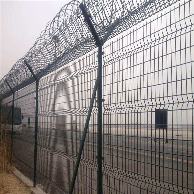 機場鋼筋圍界網(wǎng)是一種高安全隔離防護網(wǎng),這種新型隔離網(wǎng)一般由鋼筋焊接網(wǎng)、Y型防護立柱以及蛇腹式刀刺網(wǎng)等幾大主體組成,既有良好的通透性,又能起到強有力的安全隔離防護效果,頂部加裝刀刺網(wǎng),鋒利的刀型,有效制止的攀爬行為,強有力的發(fā)揮著保護機場作用,同時美觀大方,與周圍環(huán)境以及任何景觀、設備都能完美相融合,也正因為如此,機場鋼筋圍界網(wǎng)被大量應用。