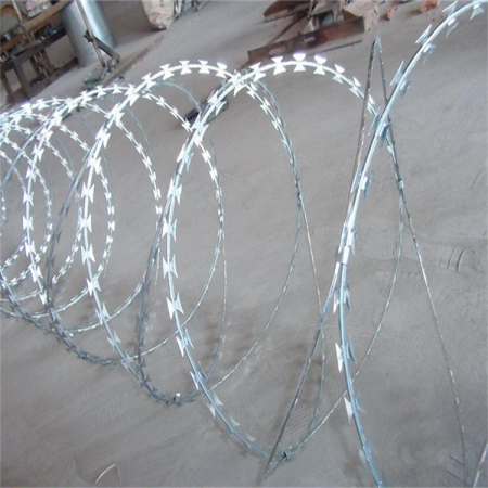刀片刺網按照安裝方法不同可分為:(蛇腹式) 螺旋式刀片刺繩,直線型刀片刺繩,平板式刀片刺繩,刀片刺繩焊接網等。