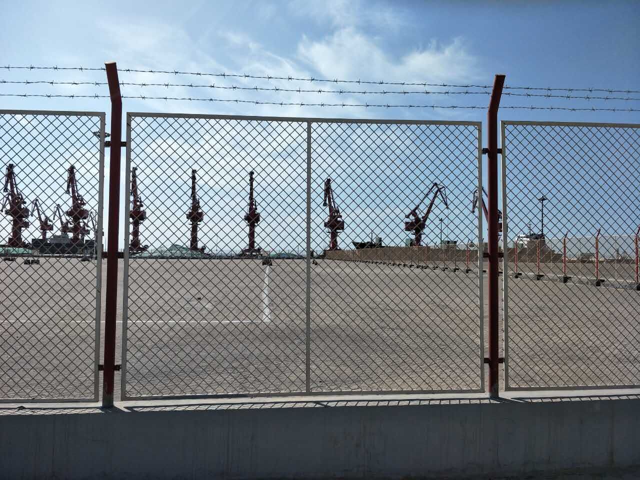 港口碼頭鋼絲網(wǎng)圍欄結(jié)構(gòu)分為兩種:1、立柱+邊框,立柱采用方形鋼管為多,網(wǎng)體邊框采用小號矩形方管為材料,立柱與邊框相對應(yīng)位置均焊連接扁鐵沖壓耳片,立柱與網(wǎng)框通過連接耳片上螺栓固定,立柱底部焊接底板,立柱底板通過膨脹螺栓與地面固定。2、無框,立柱形式圓形與方形均可采用,網(wǎng)體網(wǎng)格長方形居多絲經(jīng)相對較大。網(wǎng)體形式多樣,結(jié)構(gòu)形式簡潔,牢固與美觀兼?zhèn)?,既起到隔離防護功能也起到裝飾作用。