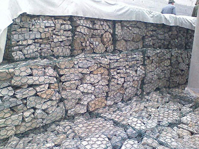 石籠網(wǎng)是使填石固定就位的鐵絲或聚合物絲網(wǎng)格式制作物。鐵絲籠是由鐵絲編織的網(wǎng)格或焊接而成的結(jié)構(gòu)物。這兩種結(jié)構(gòu)可以是電鍍的,編織的鐵絲箱可另外涂上PVC。用抗風(fēng)化堅(jiān)硬石塊作填料,它在石箱或石籠沉排中不會(huì)因磨蝕而很快破碎。裝有不同類型的塊石的石籠有不同的特性。多角的塊石能相互很好地聯(lián)鎖在一起,用其填裝的石籠不易變形。