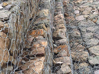 箱型石籠由大規(guī)格六角網(wǎng)聯(lián)結(jié)而成,施工中只需將石塊裝入籠中封口即可。
