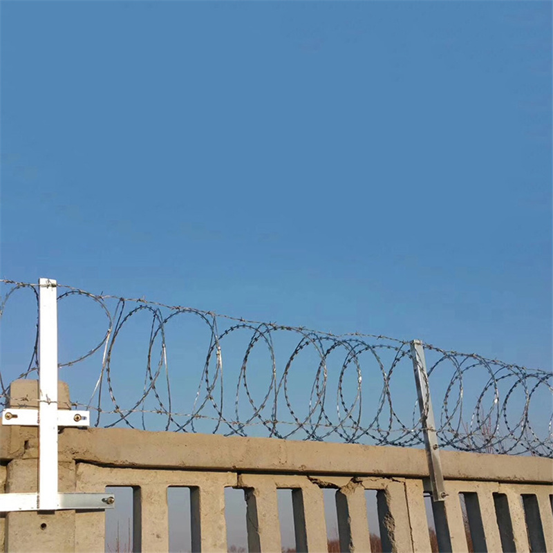 刀片刺繩的安裝要求: 1 、刀片刺繩防護(hù)柵欄安裝時(shí)做到:嚴(yán)、齊、順、美,橋下封閉不得留有空隙,柵欄方向沿橋梁方向順直。 2 、柵欄安裝時(shí),應(yīng)對(duì)柵欄兩側(cè)地面進(jìn)行平整壓實(shí),當(dāng)柵欄設(shè)置在坡地或柵欄兩側(cè)存在高低差時(shí),應(yīng)將柵欄兩側(cè)范圍高出部分進(jìn)行平整,保證柵欄對(duì)于兩側(cè)地面均達(dá)到防護(hù)高度。 3 、刀片刺繩與線(xiàn)路防護(hù)柵欄連接橋下防護(hù)柵欄應(yīng)與線(xiàn)路防護(hù)柵欄進(jìn)行緊密順接,防止先接觸出現(xiàn)較大間隙。