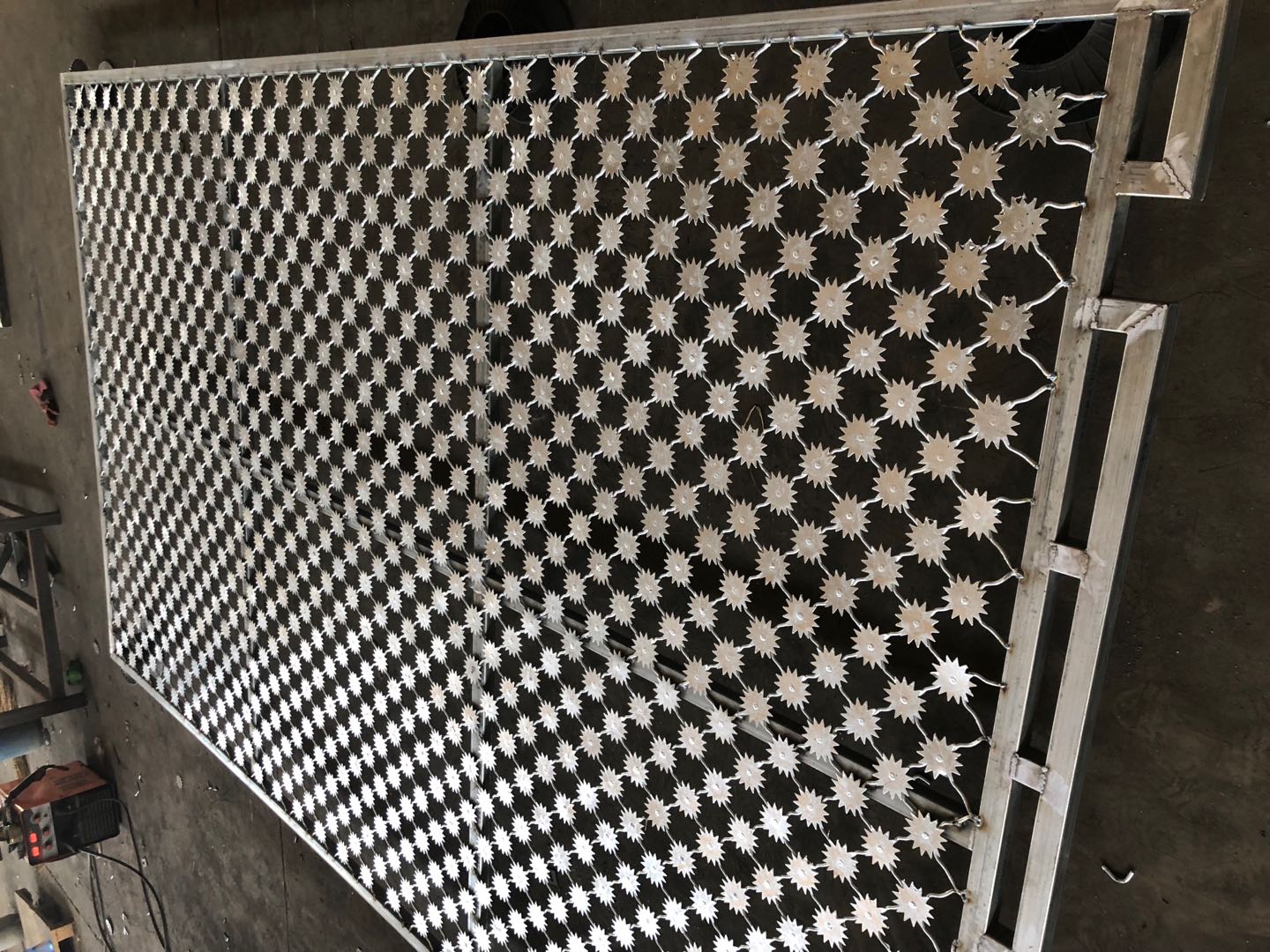 梅花刺片隔離網(wǎng)梅花剌防攀爬隔離網(wǎng)、梅花剌隔離網(wǎng)連接、緊固件應(yīng)采用防盜專用螺栓(螺母)加彈簧墊,安裝固定后無專用工具無法拆卸,安裝配件均采用熱鍍鋅處理。