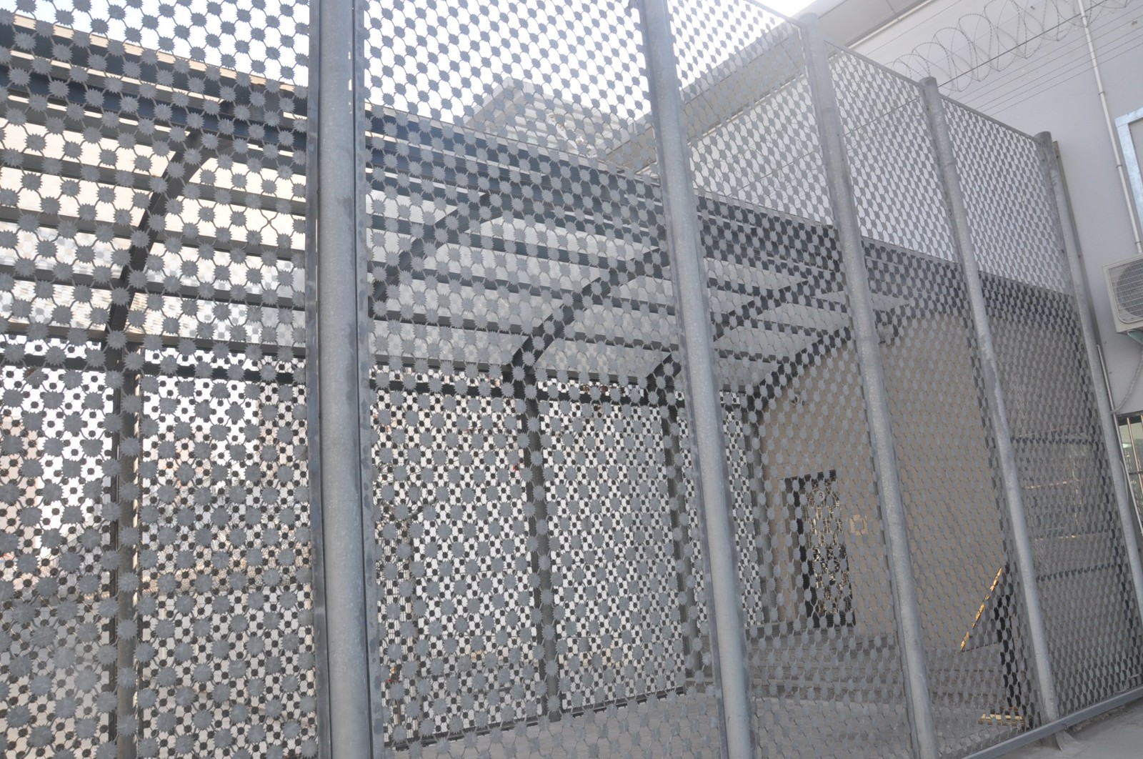噴塑制作流程,首先將工件脫脂→水洗→拋丸→磷化→烘干→靜電噴涂(將工件連接靜電,粉末經(jīng)過噴槍噴射在工件表面)→高溫固化→成品。優(yōu)點:表面平整度、光澤度更優(yōu)于浸塑表面,色彩艷麗,共有200多種顏色可供選擇,防腐壽命7年以上,缺點:涂層較薄,運輸和使用過程中容易破壞,從而影響監(jiān)獄隔離網(wǎng)的使用效果。