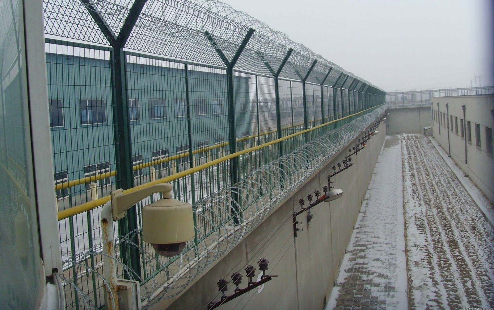 監(jiān)獄巡邏道防攀爬隔離網(wǎng)在圍墻上方的固方式: