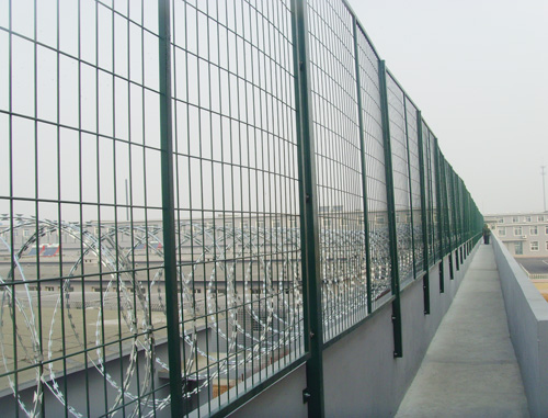 監(jiān)獄巡邏道鋼網(wǎng)墻的安裝固定方式: