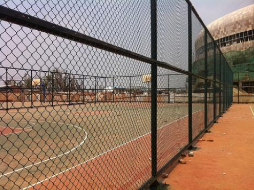 6米高體育場圍欄網(wǎng)的材質(zhì)為美觀及保證質(zhì)量,絕大部分采用PE包塑鐵絲網(wǎng)做籃球場的圍網(wǎng),既可節(jié)省每年為普通鐵絲重新油漆的費用,其使用壽命又較普通鐵絲網(wǎng)長三~五年,網(wǎng)孔規(guī)格為45mm×45mm,可以保證不會卡住或穿過網(wǎng)球。